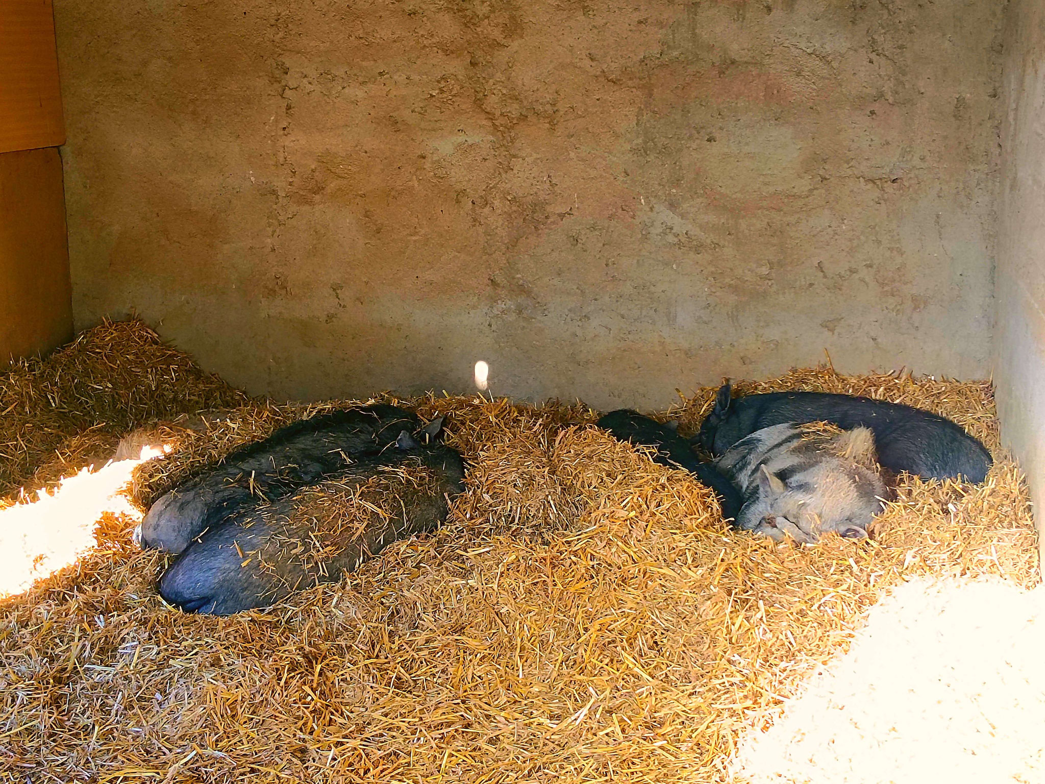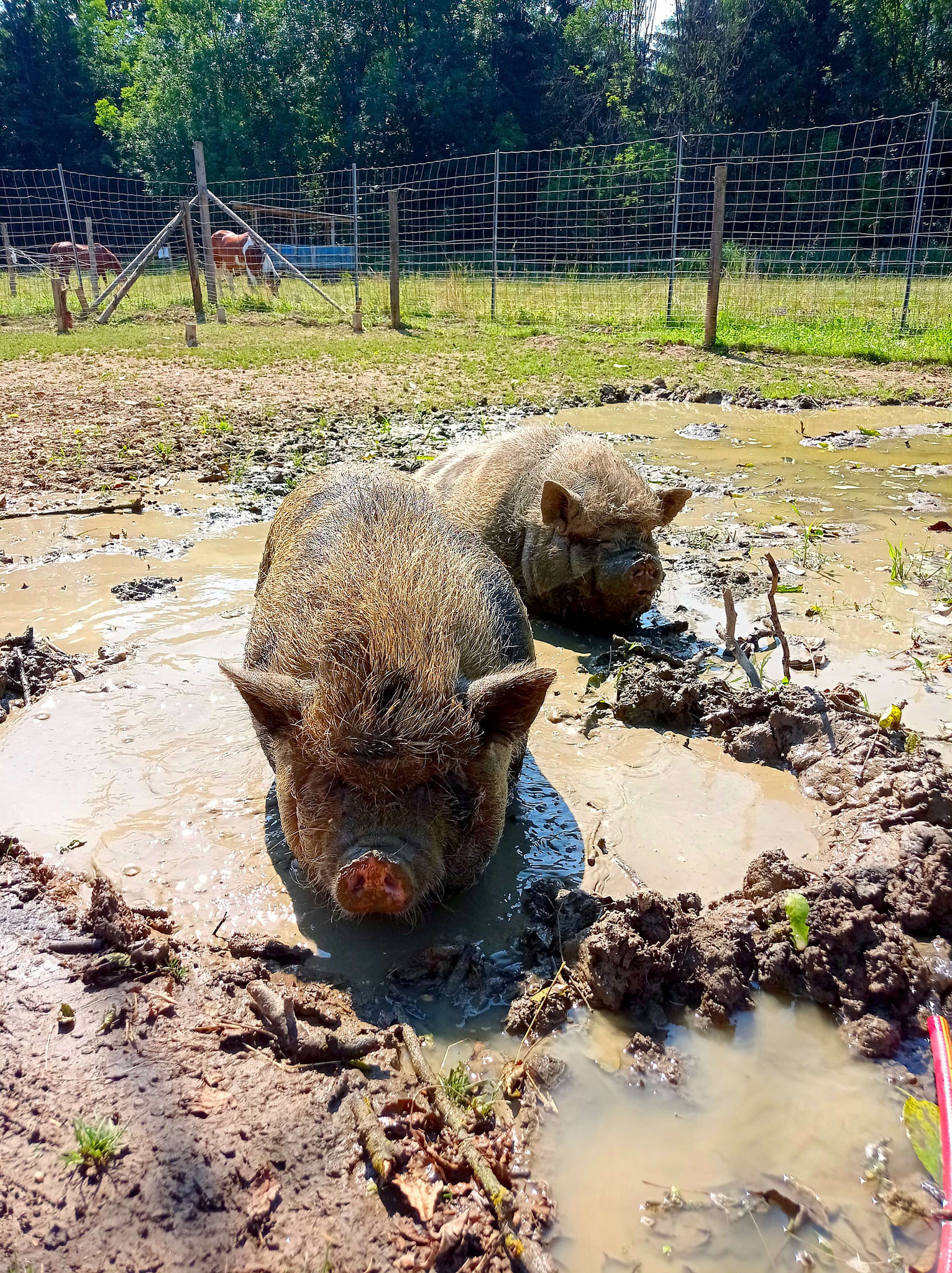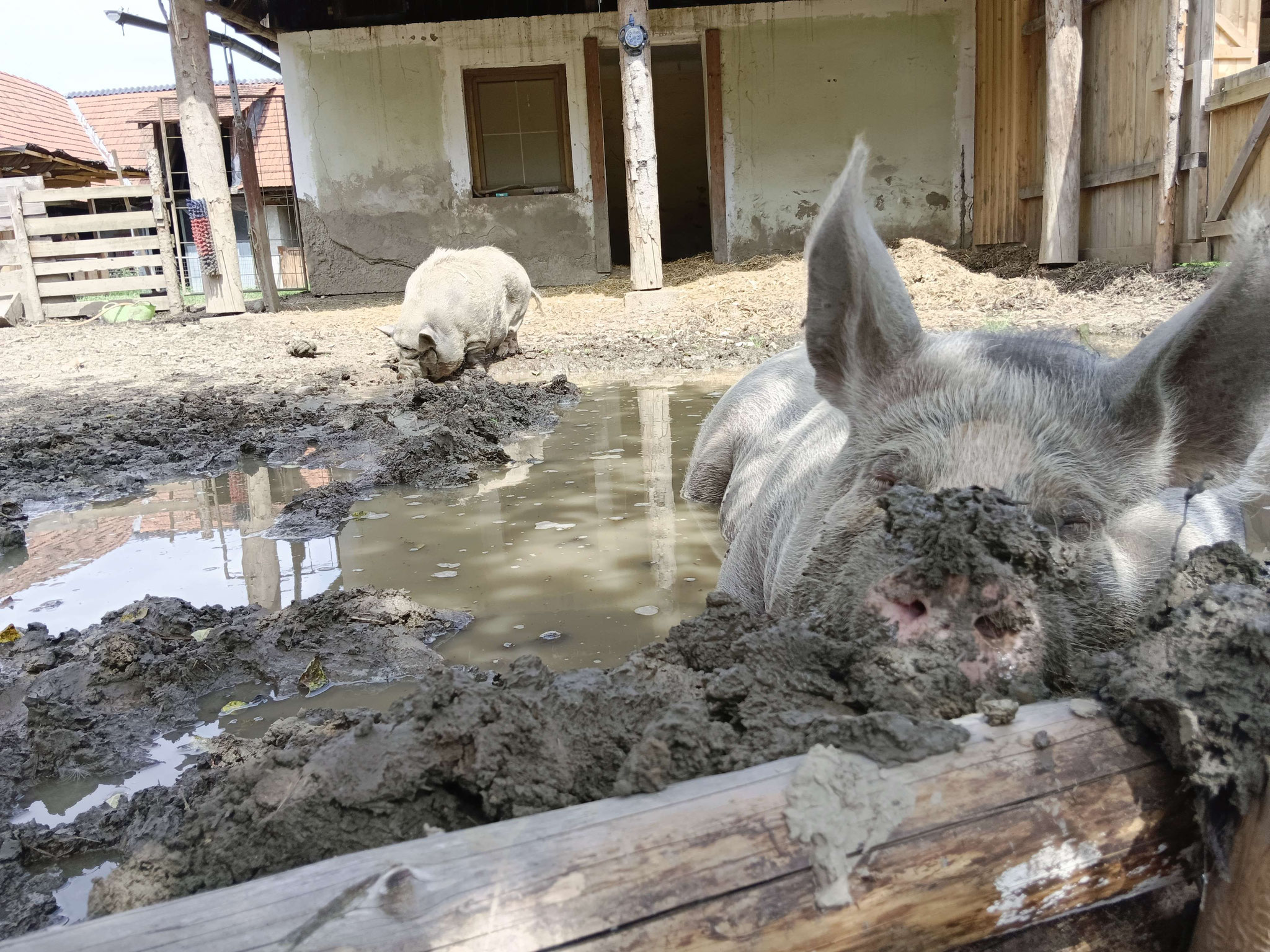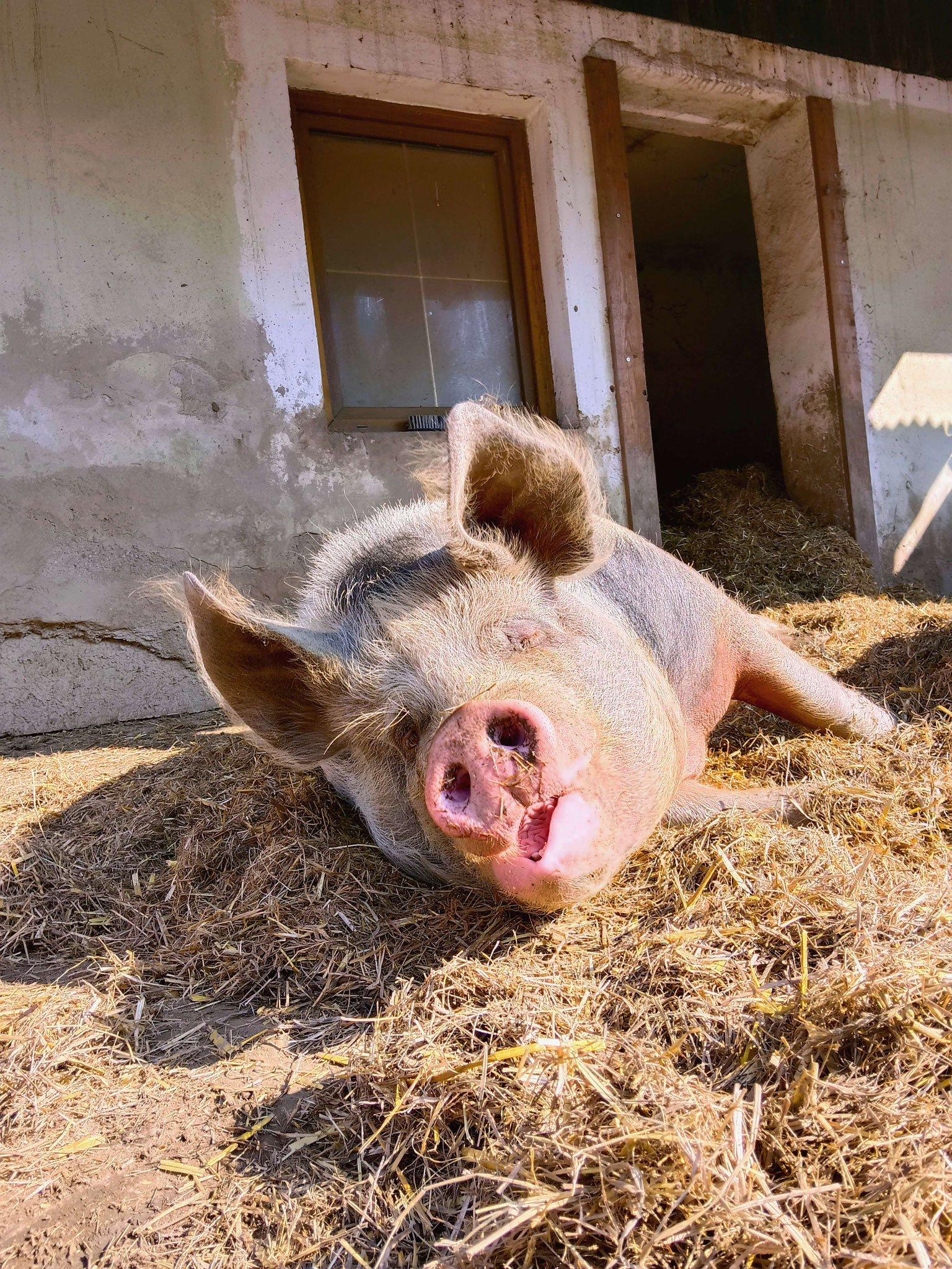 Ob beim Schlammbad in der Sonne oder beim genüsslichen Schlemmen im Stroh, unsere Schweine dürfen ihr Leben in vollen Zügen genießen.