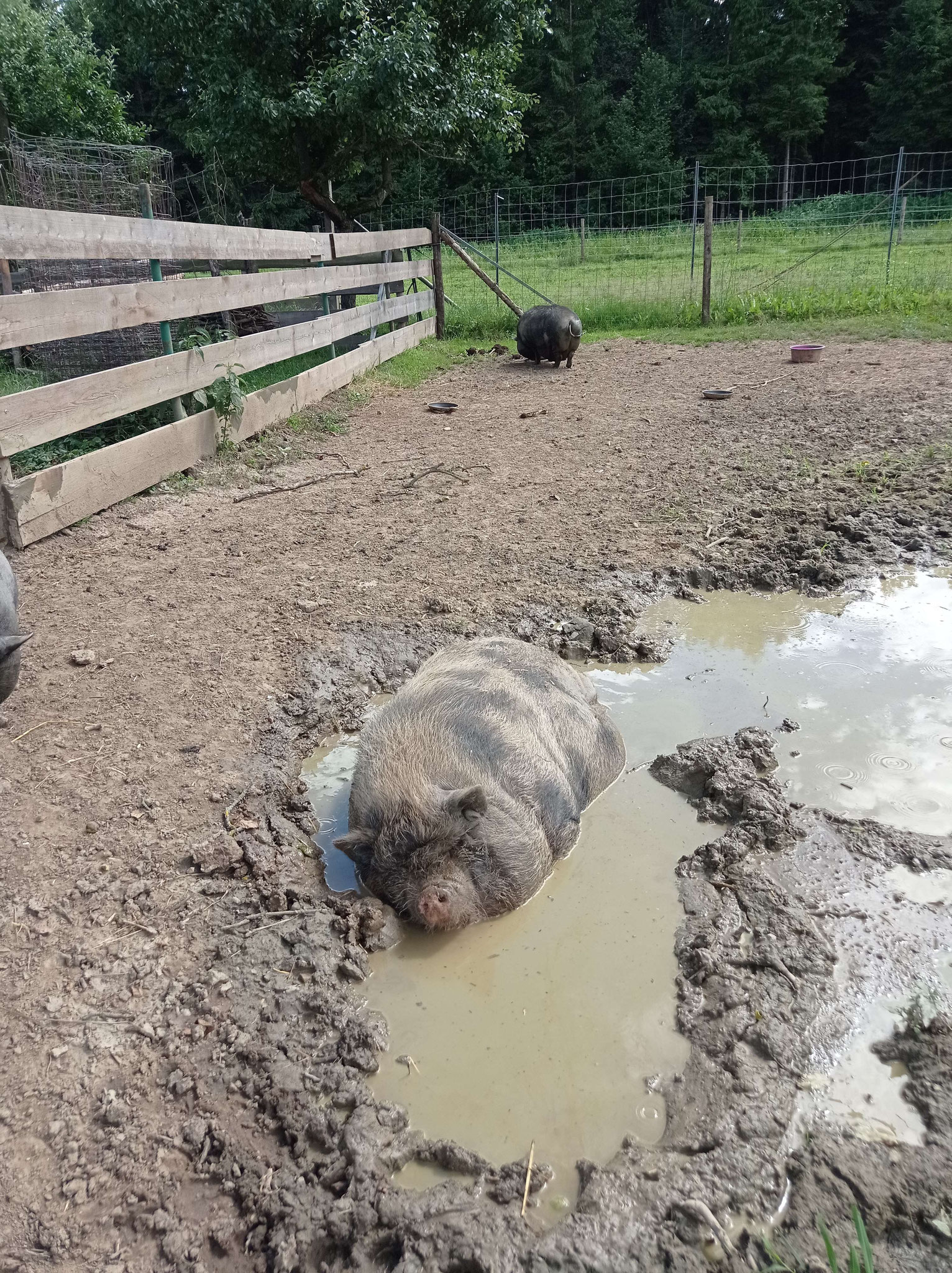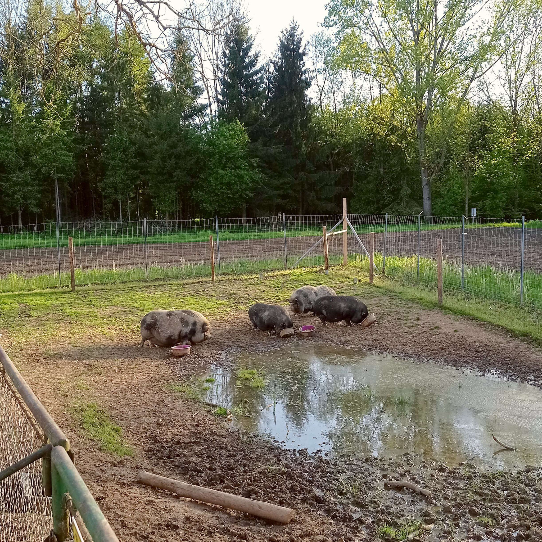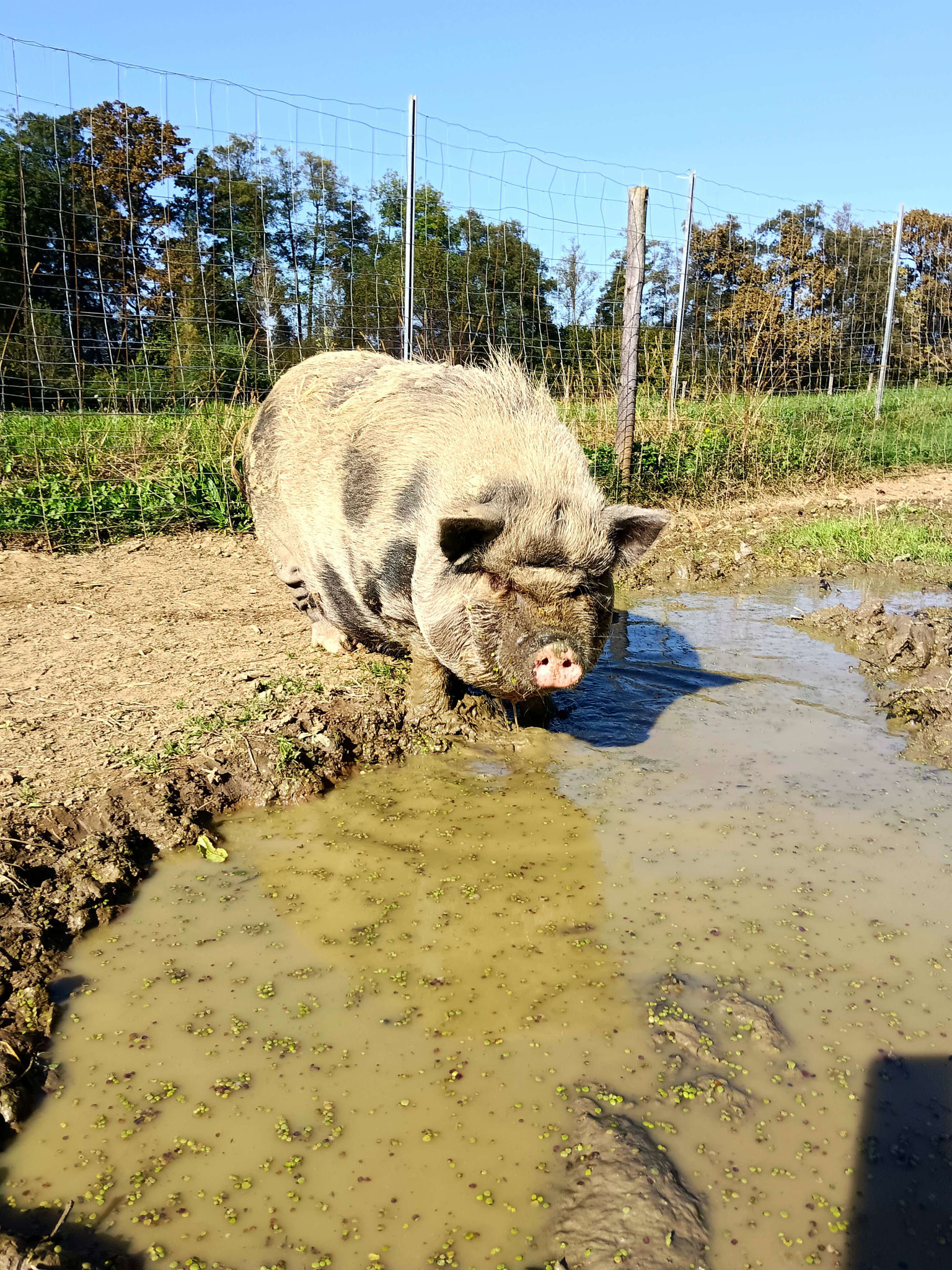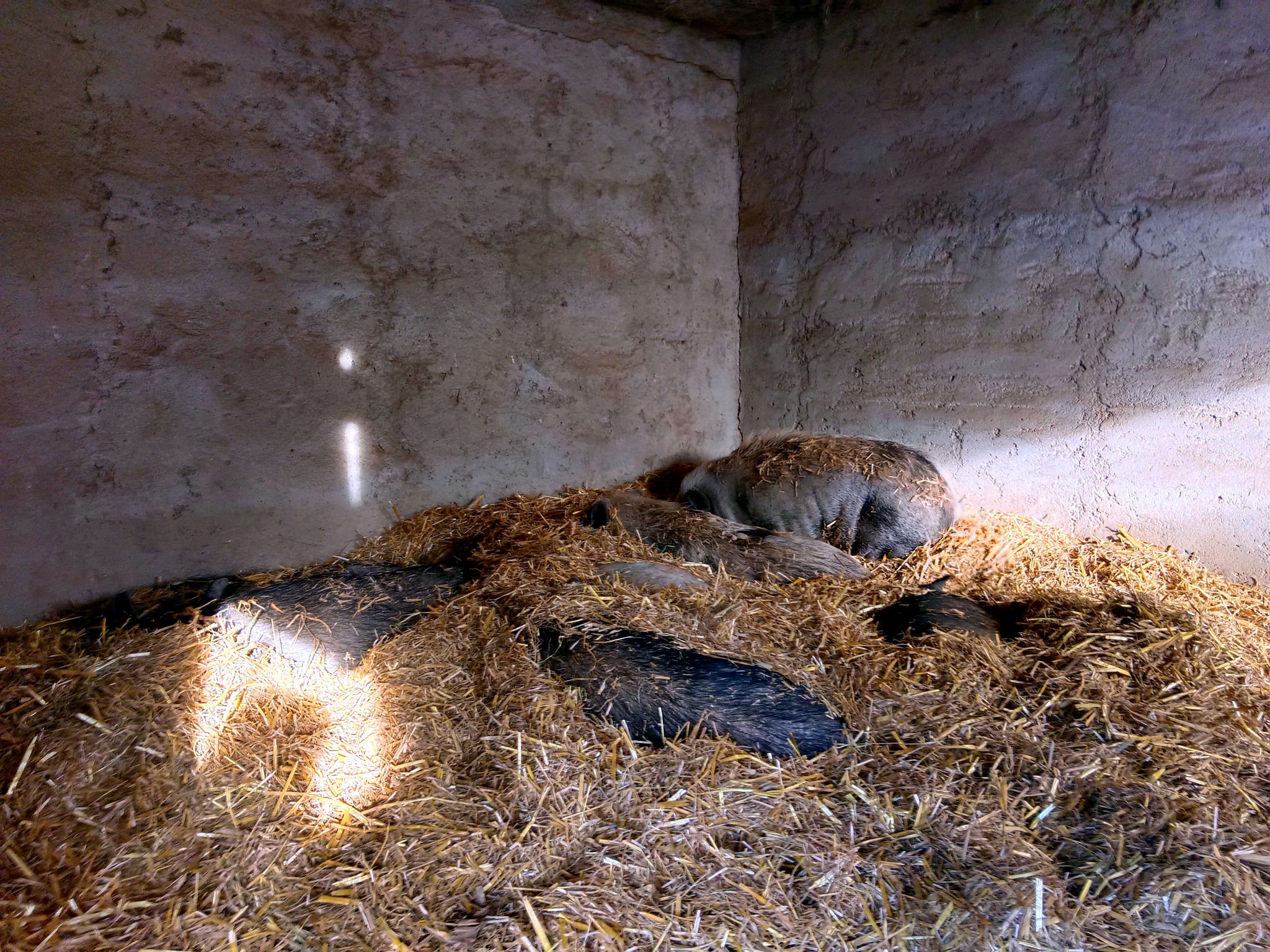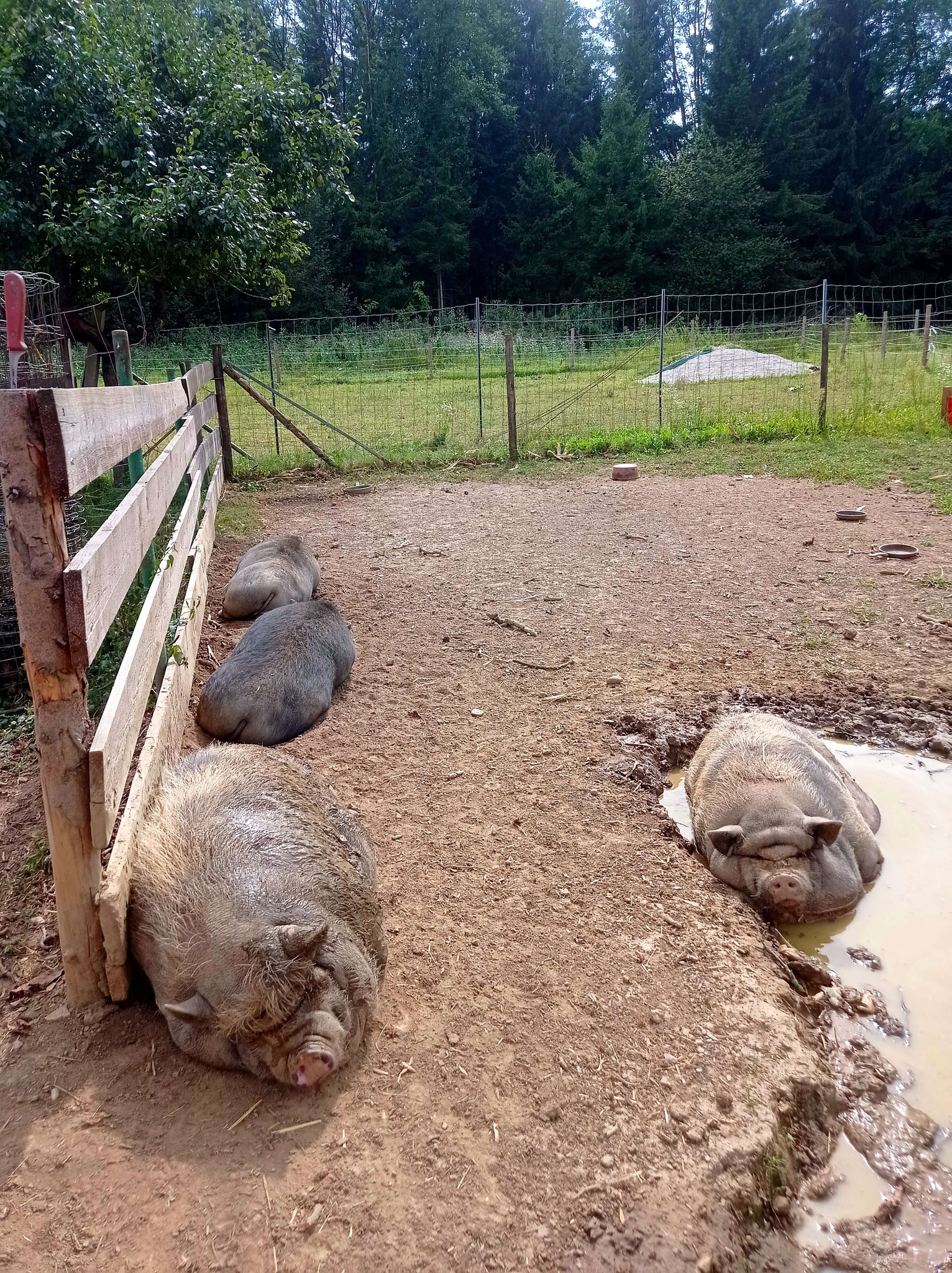 Ob beim Schlammbad in der Sonne oder beim genüsslichen Schlemmen im Stroh, unsere Schweine dürfen ihr Leben in vollen Zügen genießen.