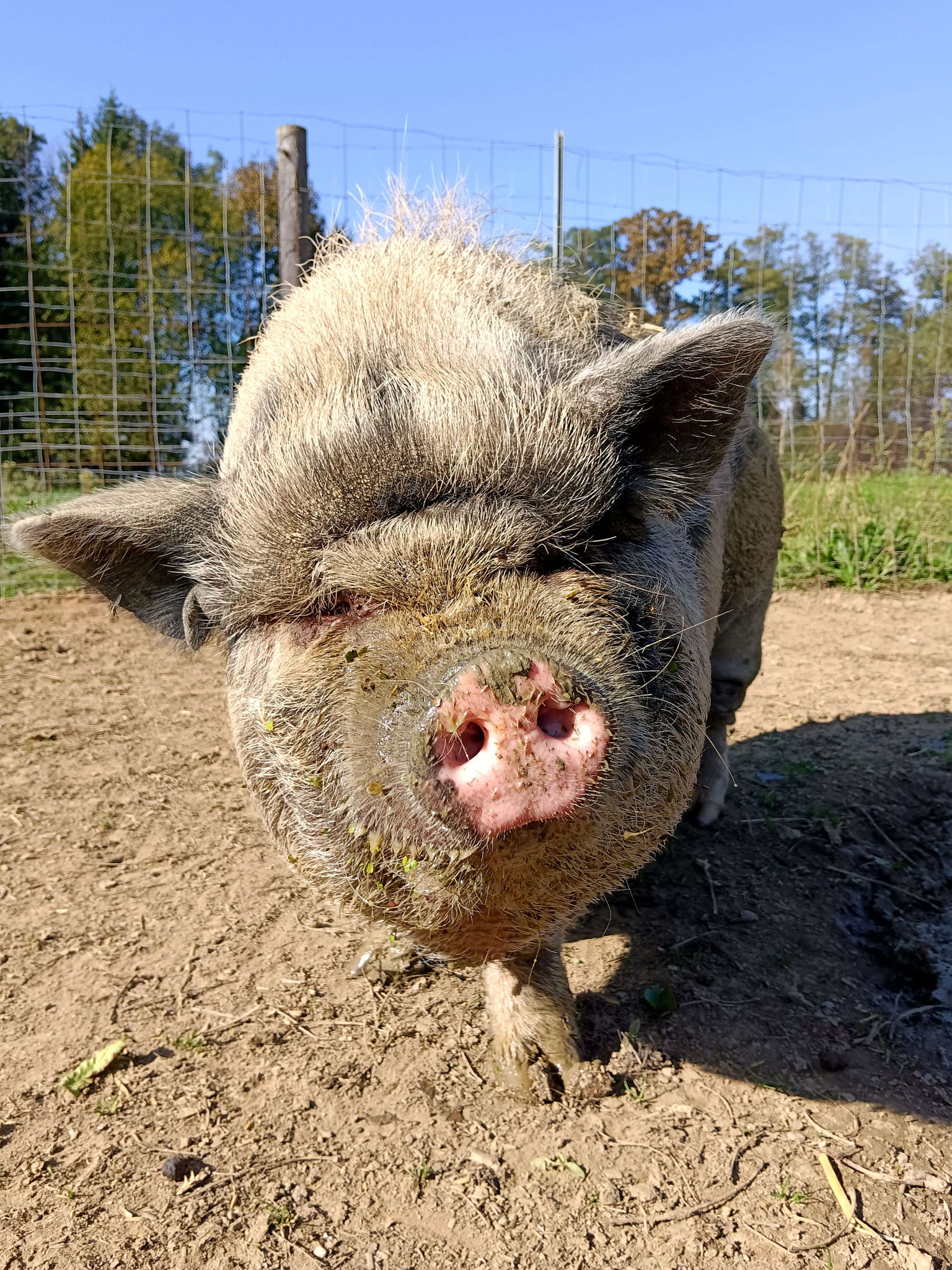 Unsere liebe Vivy ist eine freundliche und aufgeschlossene Schweinedame, die ihr Leben auf der SonnenRanch in vollen Zügen genießt. Am liebsten verbringt sie ihre Zeit draußen im Gehege,