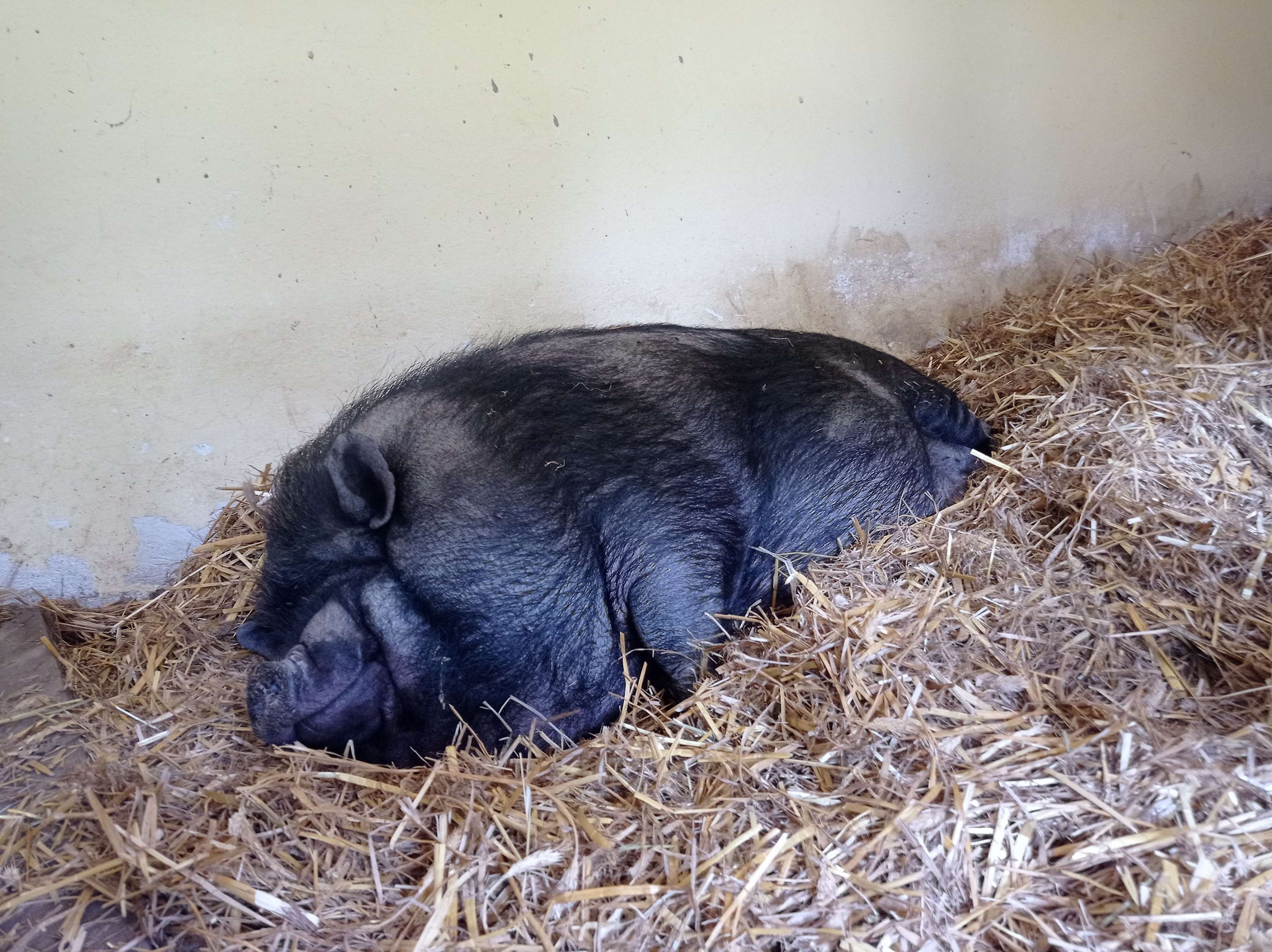 Mit ihren rund 10 Jahren gehört Bellissima oder liebevoll Belly genannt, zu den Senioren unserer Schweinefamilie. Mittlerweile ist sie vermutlich völlig blind, weshalb sie nicht mehr so