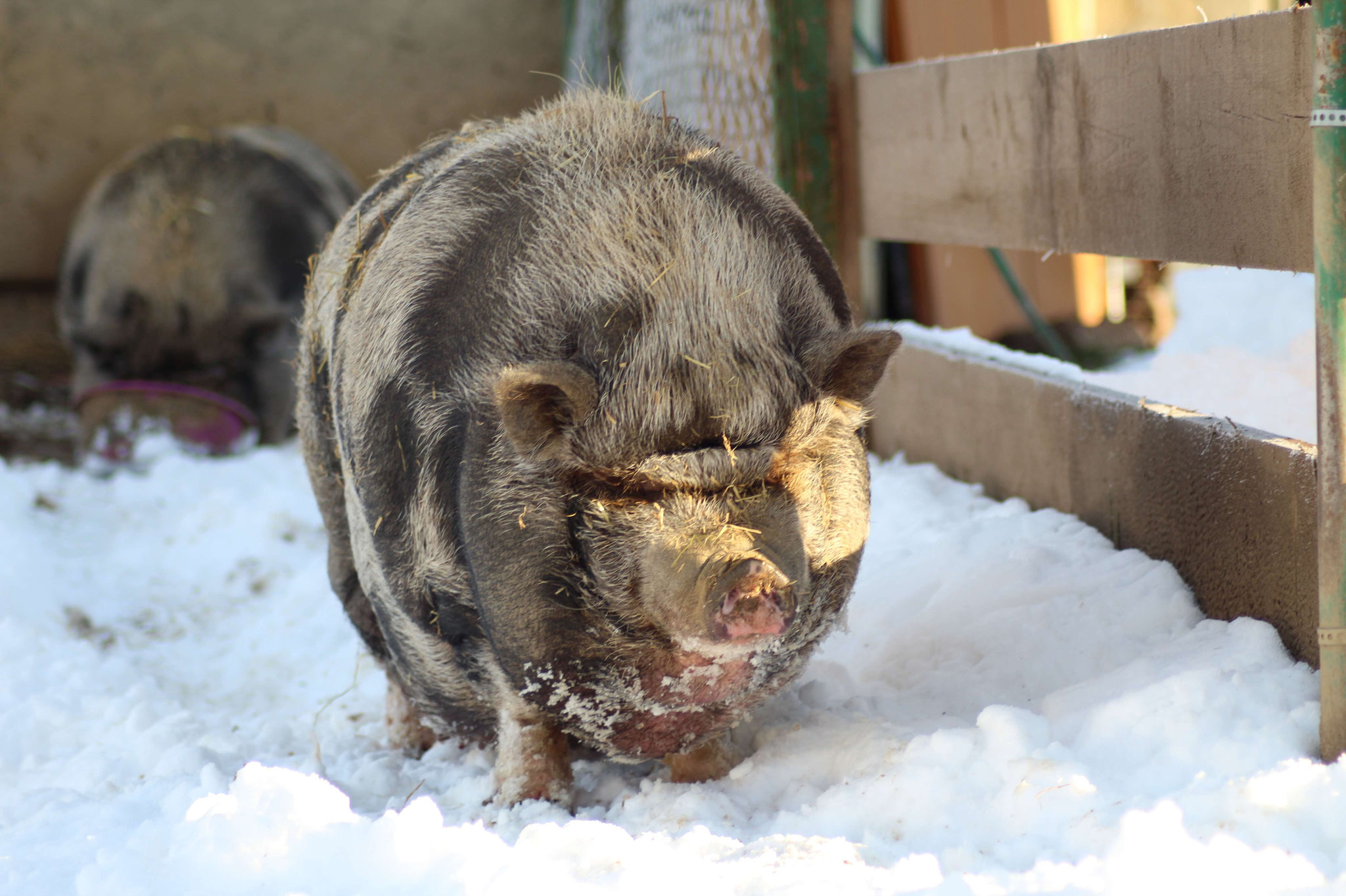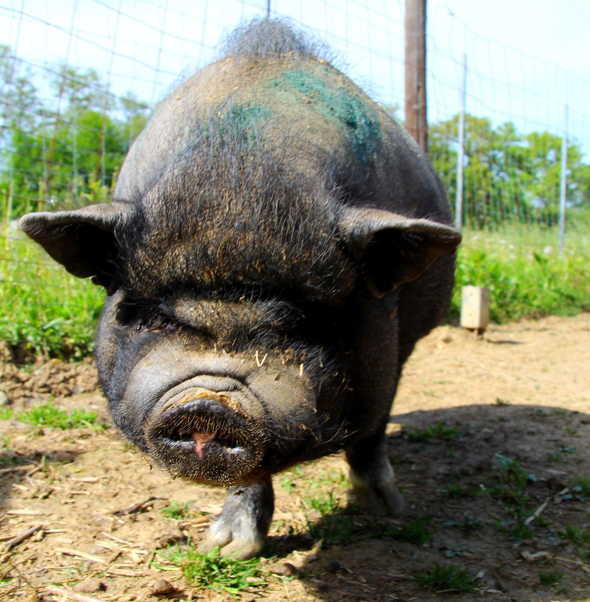 Gemeinsam mit ihrer Schwester Borsti kam Betty zu uns, nachdem sich herausstellte, dass die beiden als vermeintliche „Minischweine“ doch deutlich größer wurden als erwartet. Anfangs waren