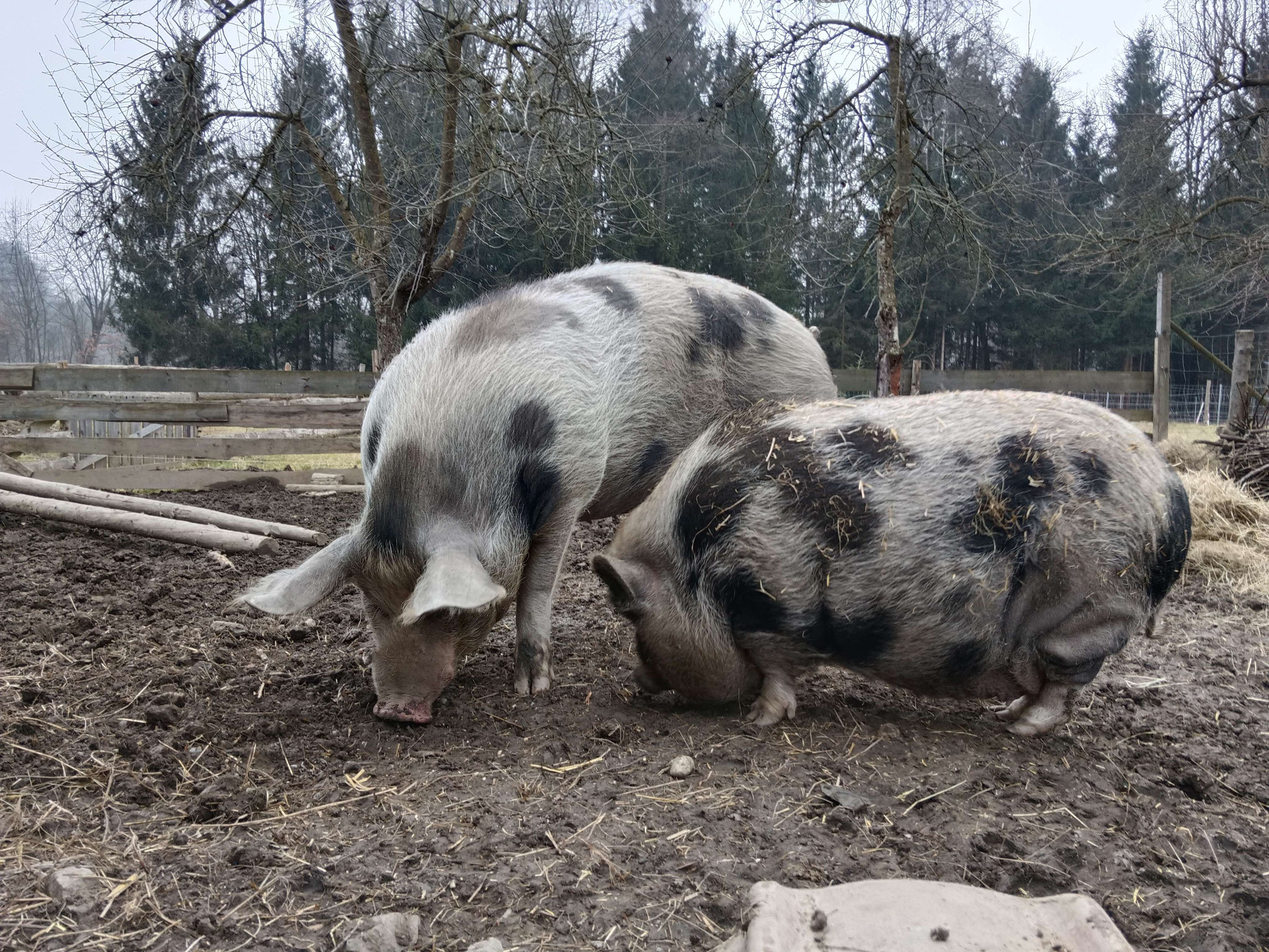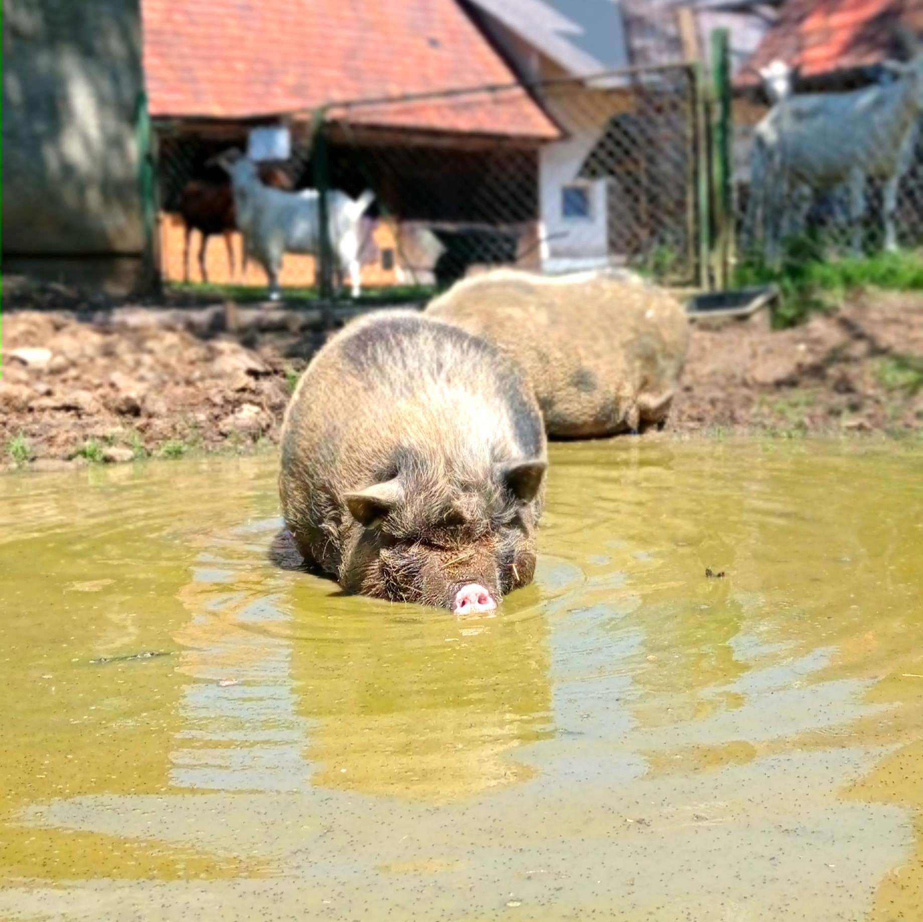 Schweine sind unglaublich kluge, sensible und gesellige Tiere. Sie lieben es, gemeinsam die Welt zu entdecken, ausgiebig zu schlemmen und sich im Matsch oder der Sonne zu entspannen.